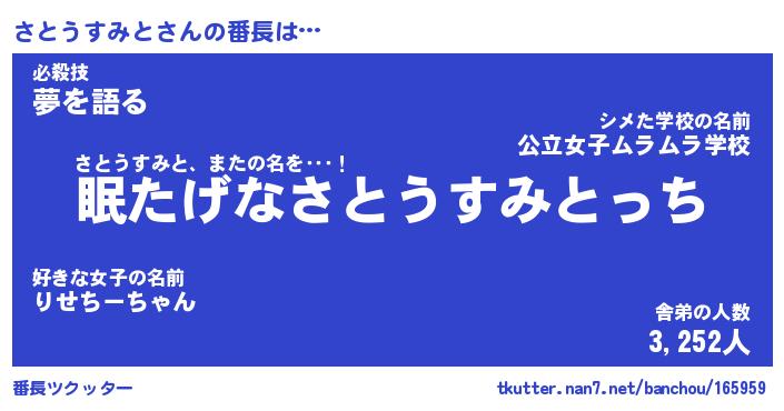 | 肩書あだ名 | 『さとうすみと社長』『さとうすみと担任』 |