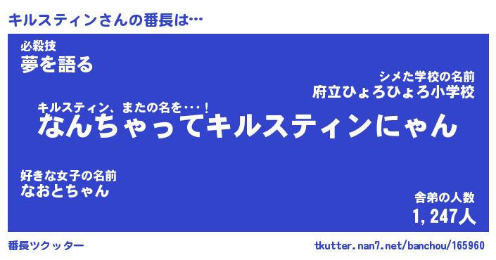 | ヒーロー風カッコイイあだ名 | 『スーパーキルスティン』『銀牙騎士キル』 |