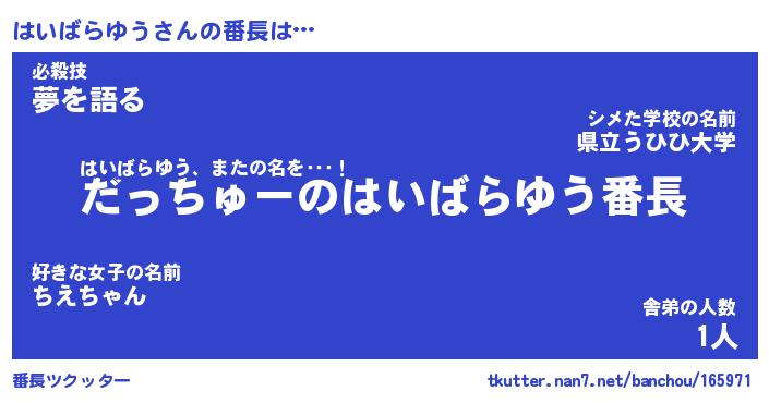 | 肩書あだ名 | 『はいばらゆう社長』『はいばらゆう班長』 |