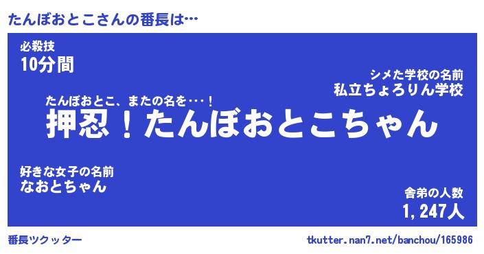 | ヒーロー風カッコイイあだ名 | 『スーパータンボオトコ』『銀牙騎士タン』 |