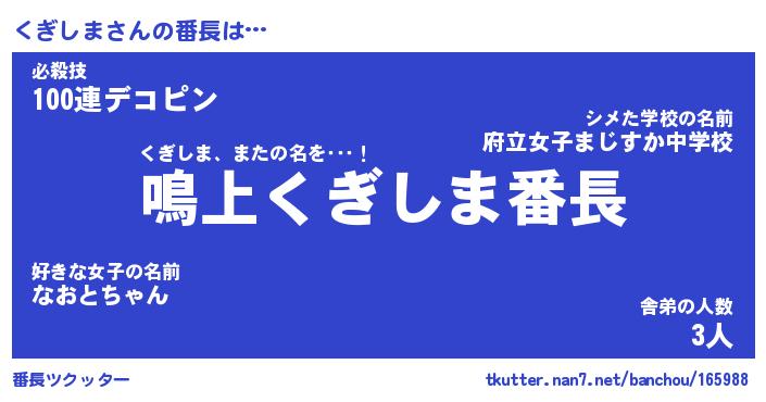 | 意味不明あだ名 | 『ペロリンくぎしま』『永久保存くぎしま』 |