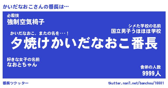 | 伝説のあだ名 | 『封印されしスナイパーかいだなおこ』 |