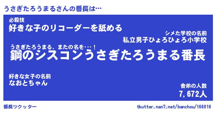 | ヘコむあだ名 | 『うさにー』『酢こんぶ』『うさお』 |
