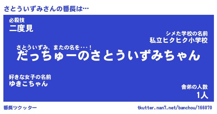 | ヒーロー風カッコイイあだ名 | 『スーパーサトウイズミ』『黄金騎士サト』 |