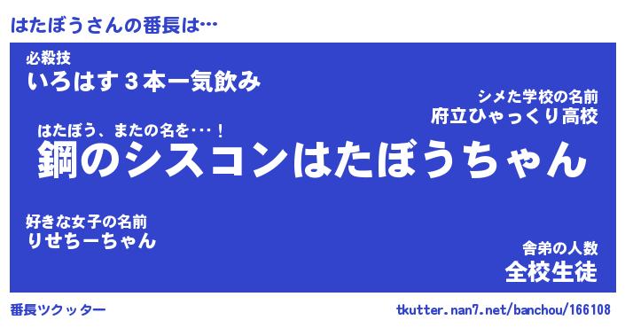| ヒーロー風カッコイイあだ名 | 『スーパーハタボウ』『銀牙騎士ハタ』 |