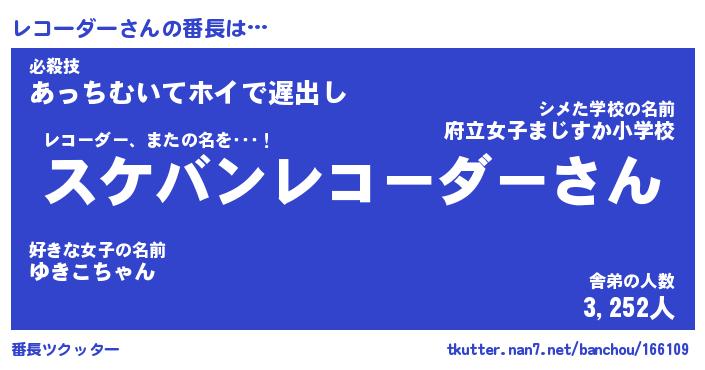 | ヒーロー風カッコイイあだ名 | 『スーパーレコーダー』『天弓騎士レコ』 |