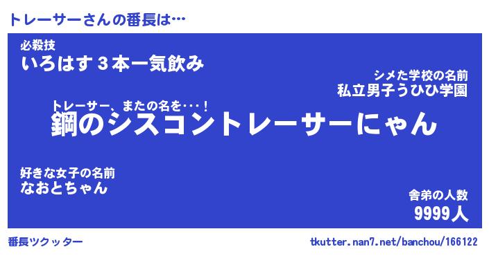 | ヒーロー風カッコイイあだ名 | 『スーパートレーサー』『銀牙騎士トレ』 |