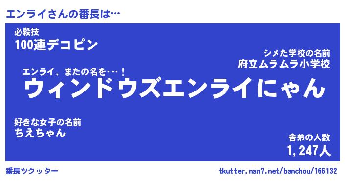 | 意味不明あだ名 | 『ペロリンエンライ』『永久保存エンライ』 |