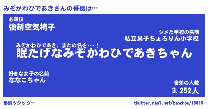 | ピコ太郎風あだ名 | 『ミコ次郎』『ピミ次郎』『ミゾ一郎』 |