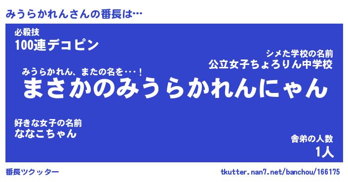 | ヒーロー風カッコイイあだ名 | 『スーパーミウラカレン』『黄金騎士ミウ』 |
