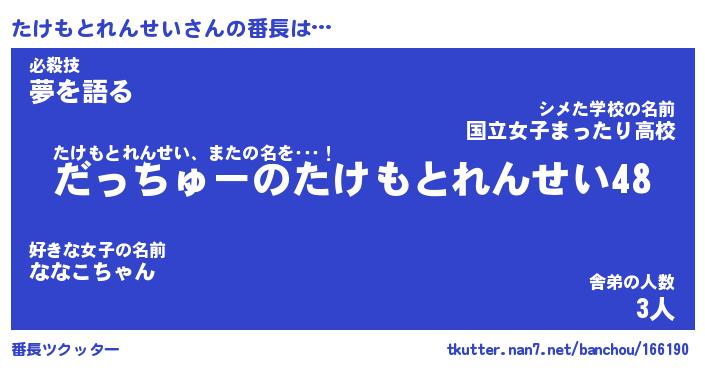 | ヘコむあだ名 | 『たけにー』『牛乳』『たけっ子』 |