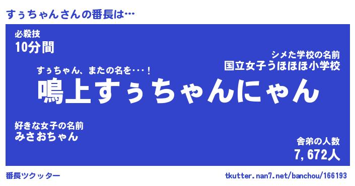 | ファンタジー風あだ名 | 『スゥフェル』『エターナルスゥチャンー』 |