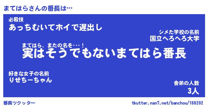 | 意味不明あだ名 | 『ペロリンまてはら』『永久保存まてはら』 |