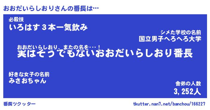 | 肩書あだ名 | 『おおだいらしおりCEO』 |