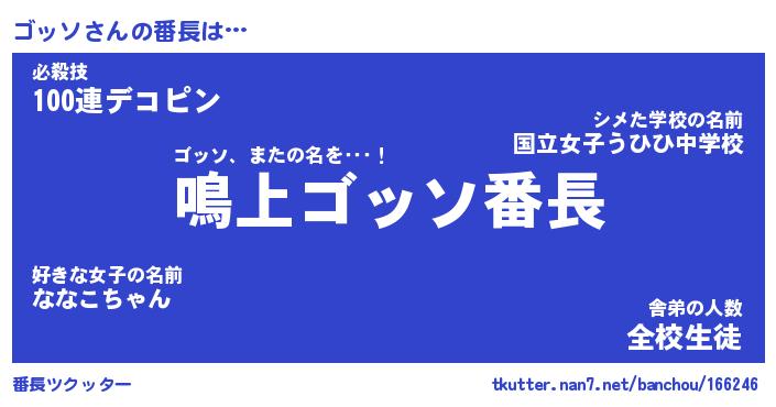 | ヘコむあだ名 | 『ゴッもー』『つくし』『ゴッっちょ』 |
