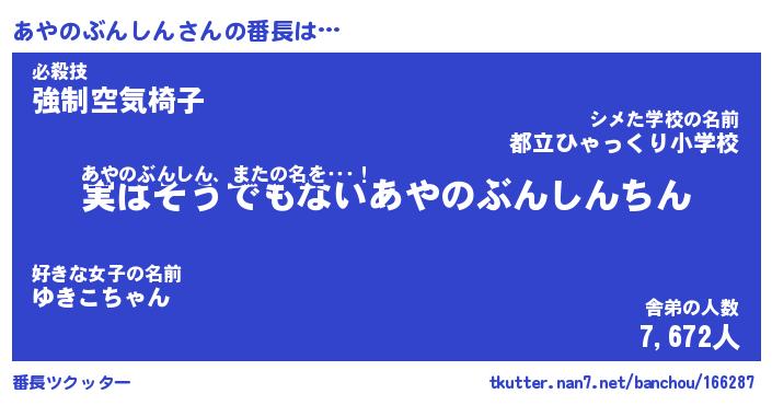 | ヒーロー風カッコイイあだ名 | 『スーパーアヤノブンシン』 |