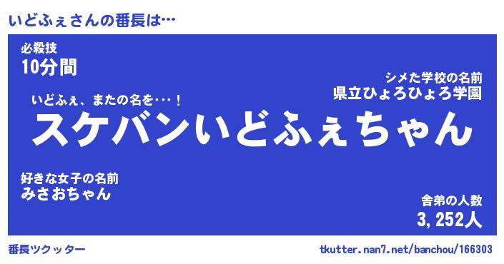 | ヘコむあだ名 | 『いどもー』『つくし』『いどぷりん』 |
