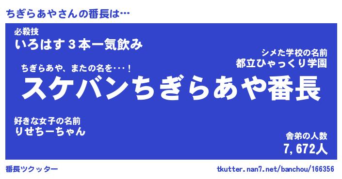 | ファンタジー風あだ名 | 『チギフェル』『エターナルチギラアヤー』 |