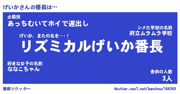 | ヒーロー風カッコイイあだ名 | 『スーパーゲイカ』『ウルトラげいかマン』 |