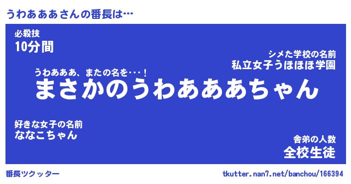| ファンタジー風あだ名 | 『ウワフェル』『エターナルウワアアアー』 |