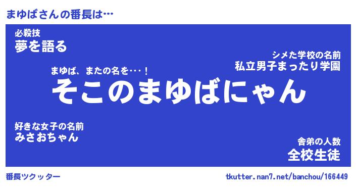 | ヒーロー風カッコイイあだ名 | 『スーパーマユバ』『ウルトラまゆばマン』 |