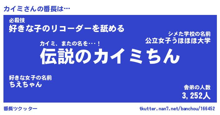 | ヘコむあだ名 | 『カイふぇ~』『なまこ酢』 |