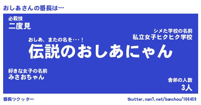 | 意味不明あだ名 | 『ペロリンおしあ』『おしあフォーエバー』 |