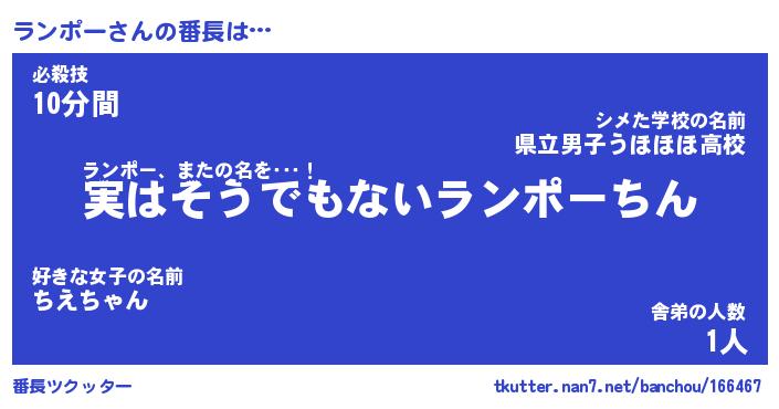 | 伝説のあだ名 | 『封印されしスナイパーランポー』 |