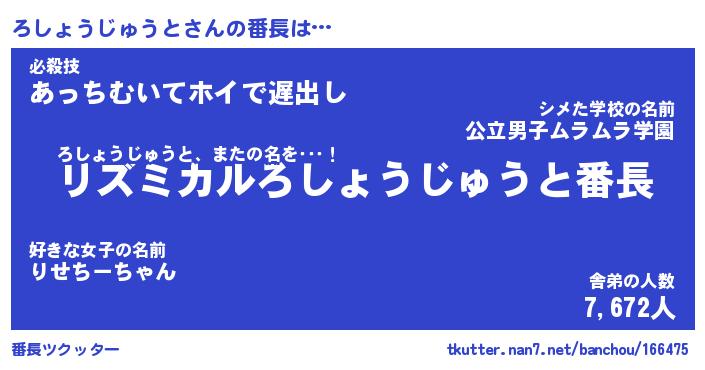 | 2回繰り返すあだ名 | 『ろしろし』『ろろしし』『ぬるぬる』 |