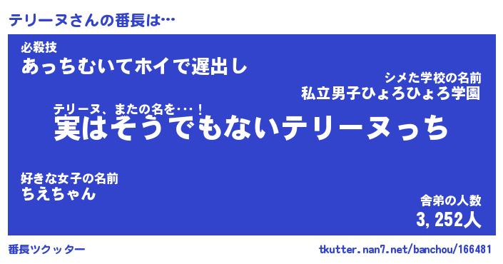 | ヘコむあだ名 | 『テリもー』『豆乳』『テリお』 |