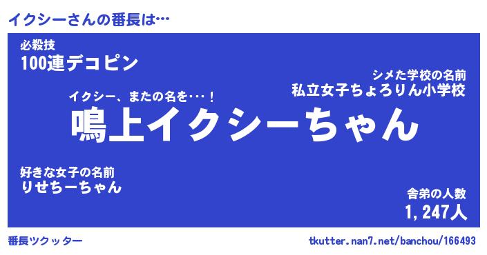 | 意味不明あだ名 | 『ペロリンイクシー』『永久保存イクシー』 |