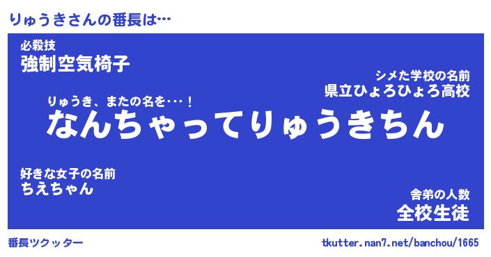 | ヒーロー風カッコイイあだ名 | 『スーパーリュウキ』『暗黒騎士リュ』 |