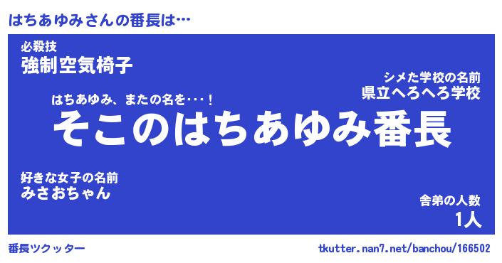 | 肩書あだ名 | 『はちあゆみ店長』『はちあゆみ国家主席』 |