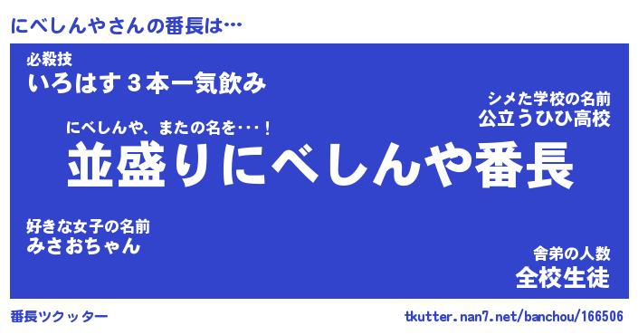 | 肩書あだ名 | 『にべしんや店長』『にべしんや総理大臣』 |