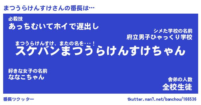 | 肩書あだ名 | 『まつうらけんすけ御曹司』 |