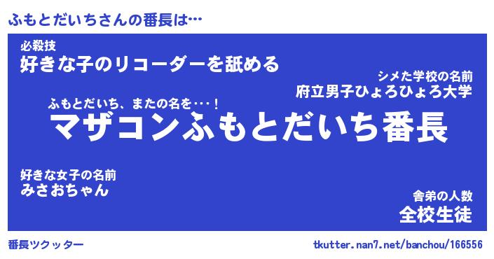| ヒーロー風カッコイイあだ名 | 『スーパーフモトダイチ』『暗黒騎士フモ』 |