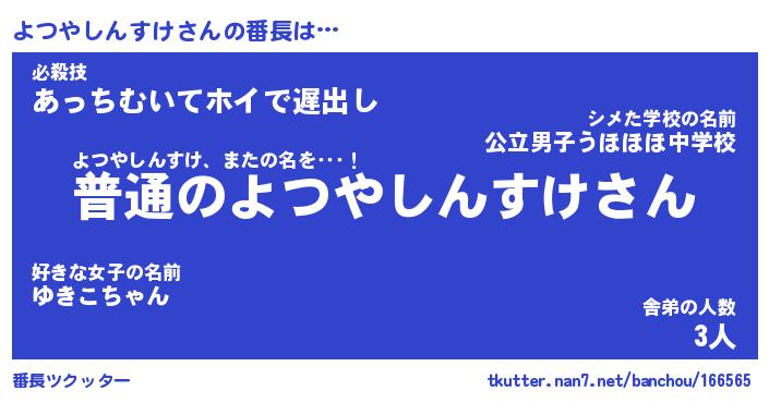 | ポケモン風あだ名 | 『ヨツチュウ』『ヨツヤダネ』 |
