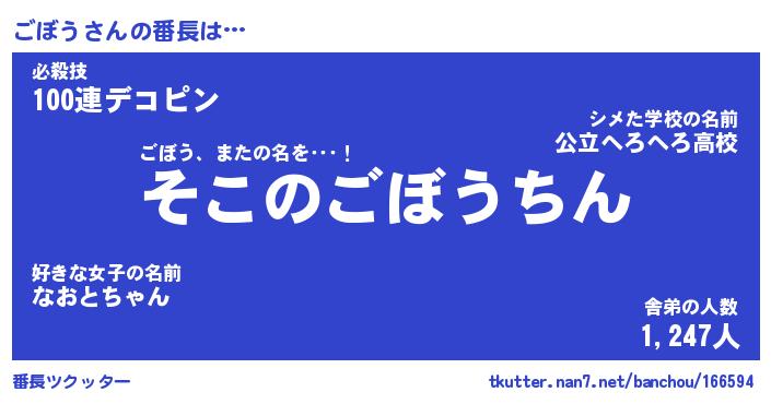 | 2回繰り返すあだ名 | 『ごぼごぼ』『ごごぼぼ』『なあなあ』 |