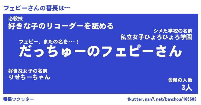 | 男性向けラノベタイトル風あだ名 | 『フェピーの憂鬱』 |