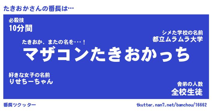| ファンタジー風あだ名 | 『タキフェル』『エターナルタキオカー』 |