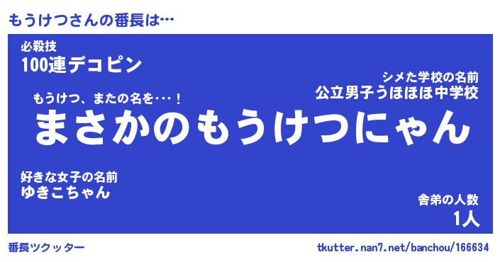 | ファンタジー風あだ名 | 『モウフェル』『エターナルモウケツー』 |