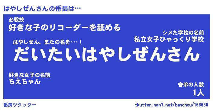 | ファンタジー風あだ名 | 『ハヤフェル』『エターナルハヤシゼンー』 |