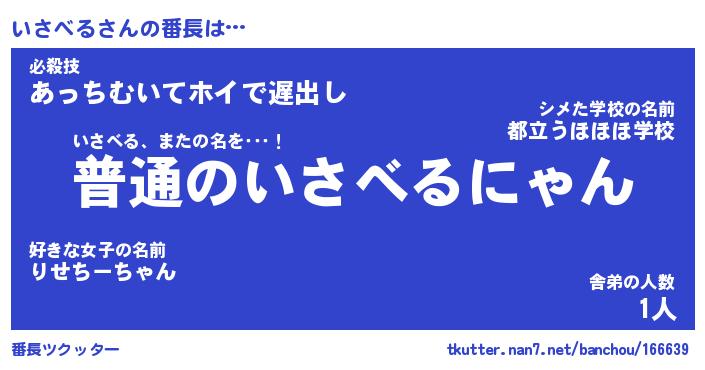 | 意味不明あだ名 | 『ペロリンいさべる』『永久保存いさべる』 |