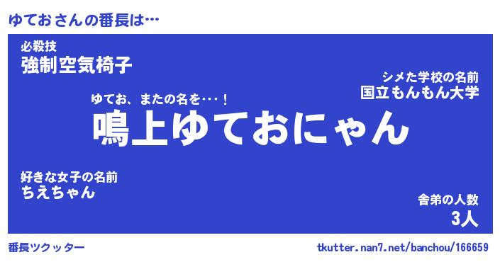 | 意味不明あだ名 | 『ペロリンゆてお』『ゆておフォーエバー』 |