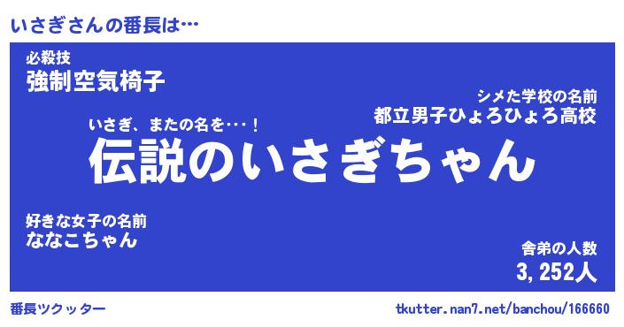 | ヒーロー風カッコイイあだ名 | 『スーパーイサギ』『ウルトラいさぎマン』 |