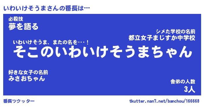 | 肩書あだ名 | 『いわいけそうま御曹司』 |