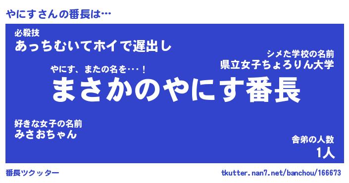 | 肩書あだ名 | 『やにす店長』『やにす国家主席』 |