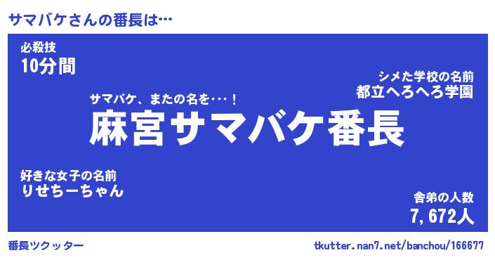 | 2回繰り返すあだ名 | 『サマサマ』『ササママ』『ぬらぬら』 |