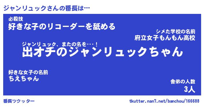 | ヘコむあだ名 | 『ジャもー』『レバニラ』『ジャ太郎』 |