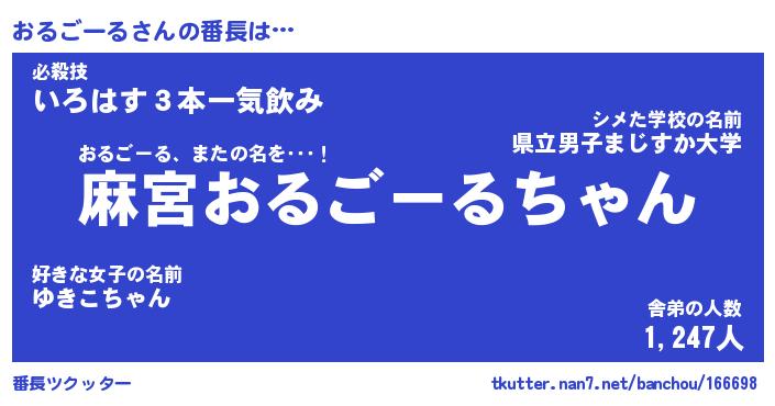 | ファンタジー風あだ名 | 『オルフェル』『エターナルオルゴールー』 |